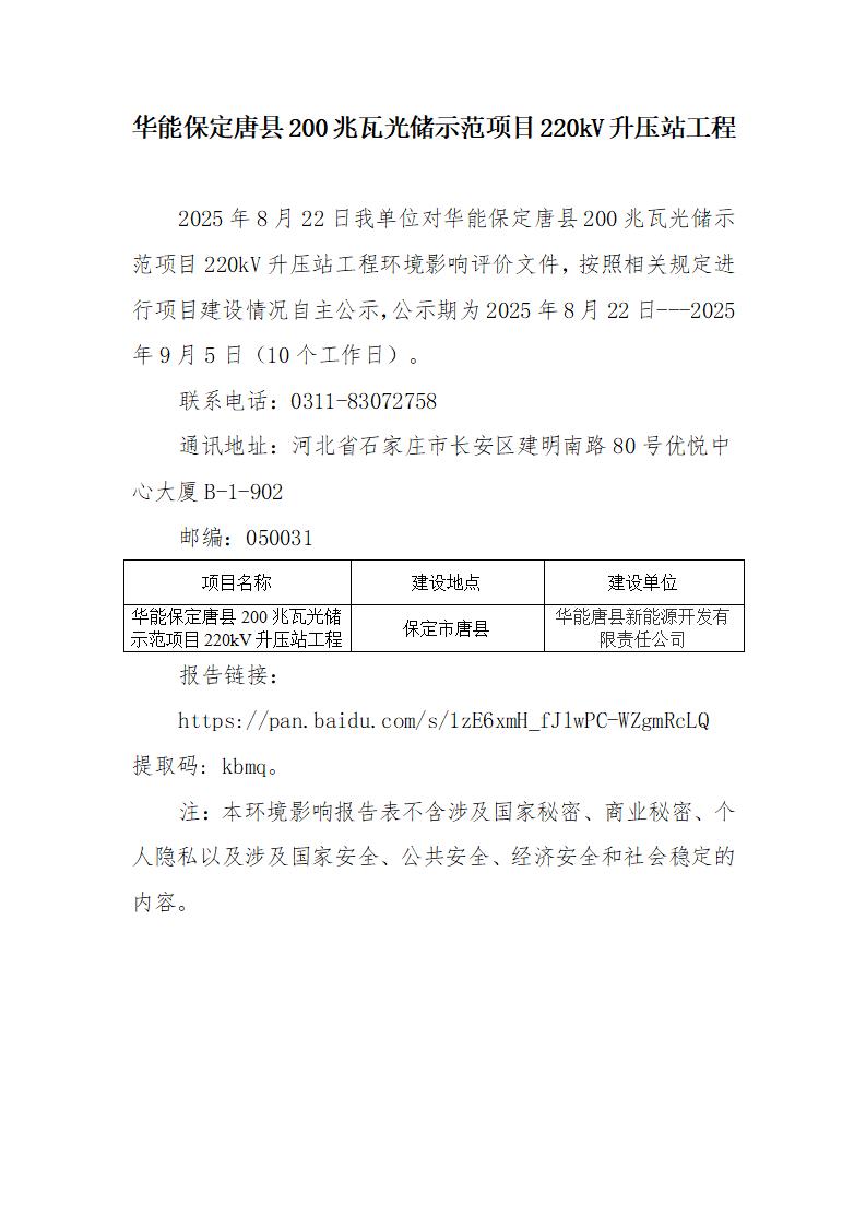 华能保定唐县200兆瓦光储示范项目220kV升压站工程
