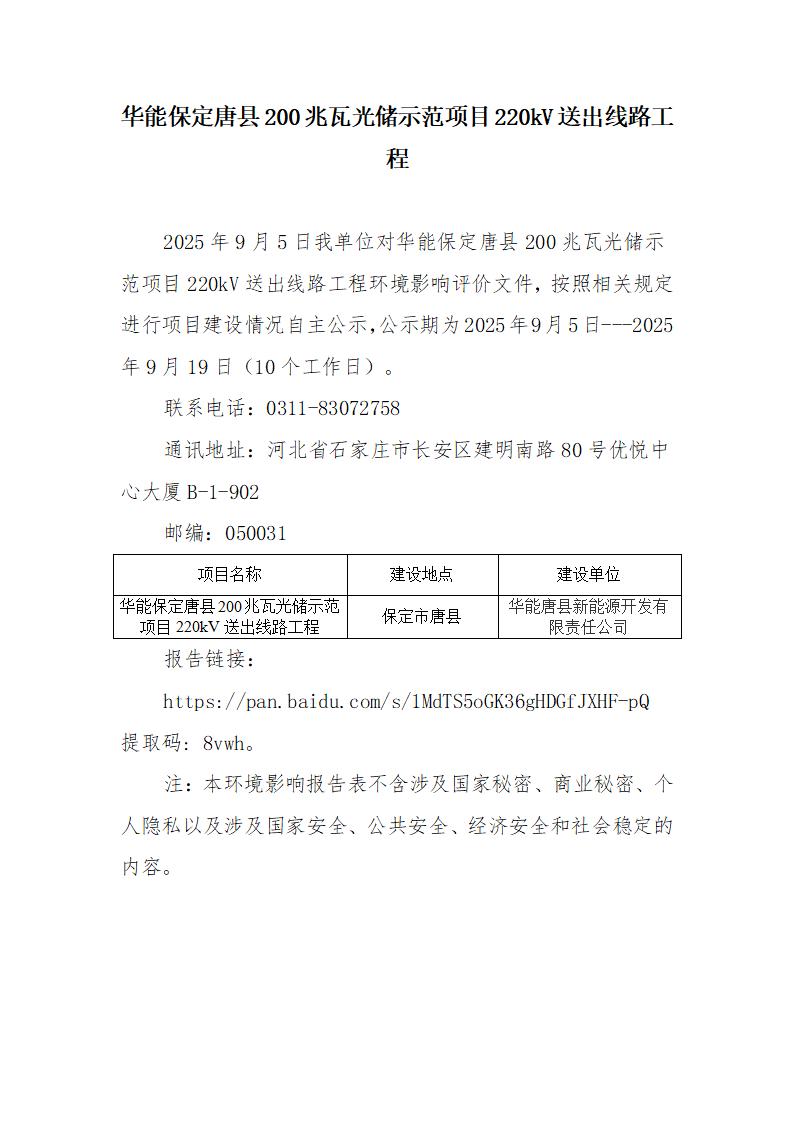 华能保定唐县200兆瓦光储示范项目220kV送出线路工程