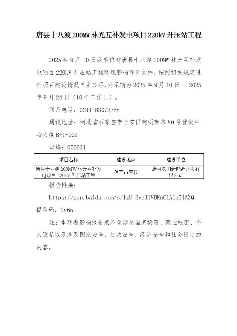 唐县十八渡200MW林光互补发电项目220kV升压站工程